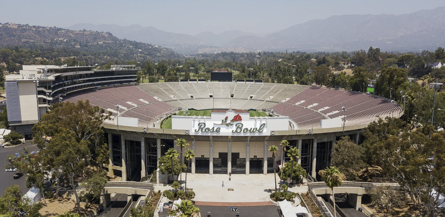 Played at the stadium in Pasadena, the Rose Bowl is one of the oldest college football games and takes place on New Year's Day.